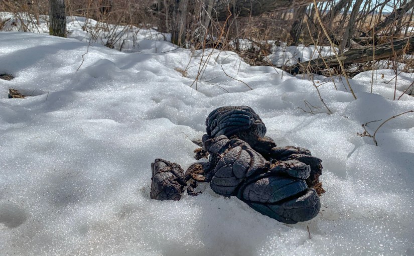 Yes, that’s a very large turd found at Elk Island National Park. Apologies for not including a familiar object for scale but, trust me, it was big, really big. The turd is remarkable in more ways that just because of its monumental size. It is dung from a Plains Bison. Bison dung provides a fascinating story of nutrient cycling and providing a home to an entire ecosystems of micro-organisms and insects. Bison dung has also served mankind in the form of fuel for cooking and warmth. Today, there are more bison at Elk Island National Park than existed in the the whole of North America in 1880. The Wood Bison (which also lives in Elk Island National Park) is the largest land mammal in North America, followed closely by their relative the Plains Bison. Hence, the huge turd!