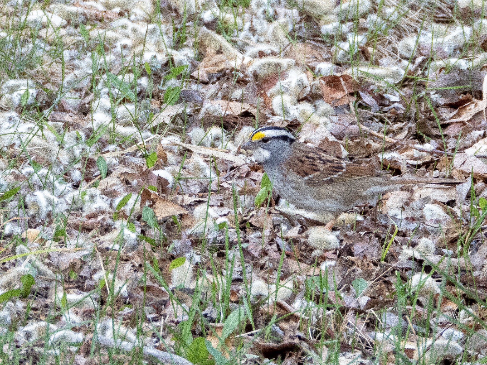 The White-throated Sparrow (Zonotrichia albicollis) has been at the top of my bird wish list ever since I embarked on this journey in December. After signing up for eBird I set up a rare bird email alert. The number of alerts I received throughout the winter were few and far in-between, but there are two particularly notable alerts. The first one was a heron sighting in Hermitage Park in mid-February. Sadly, but not surprisingly, subsequent sightnings suggests that it did not make it though the winter. The second memorable alert actually consisted of a series of intermittent alerts of White-throated Sparrow sighting. Their normal wintering grounds are a few thousand kilometres south-east of here, in the southern and eastern United States along the Atlantic and Gulf of Mexico coast. For some reason, however, every few weeks or so through the winter the odd individual was spotted in or around Edmonton. Sightings like these during the brutal central Alberta winter are extraordinary and rise many questions. Why did they stay behind? Were they lost? Did they make it through the winter? This unassuming sparrow is subtly beautiful with its black and white striped head, yellow lores (the area between the eye and the bill on the side of the head) and a white patch under its bill. It almost looked like a dolled up house sparrow. I spotted this lovely looking fellow (not sure if it a male or female) in the brush along the trail in Heritage Wetland Park in Sherwood Park.