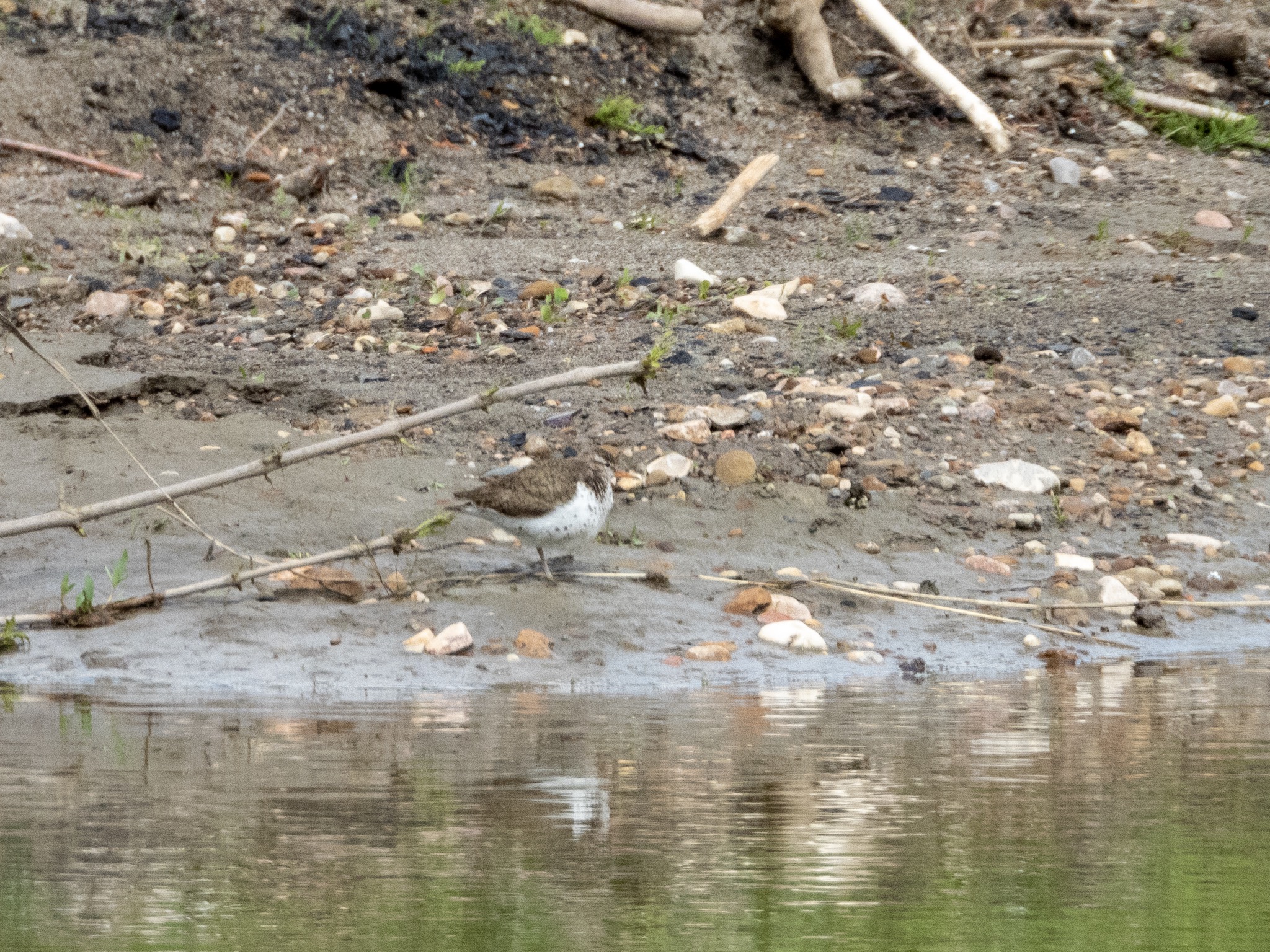 Something was definitely moving along the water’s edge, we just could not immediately focus in on it. It took us a while to adjust our eyes and calibrate our brain to pick up the small stealthy bird scurrying around on the sandy shore on the opposite side of the creek. It was a small shorebird with spotted underparts and sand brown upper parts. If it would not move around it would be nearly impossible to see against the sand and pebbles along the shoreline. I have not seen many shorebirds in my life and this one was definitely a new one. While it was working the shoreline for a morsel to eat its tail was continuously bobbing up and down. Ultimately, this is what gave it away…, it was a Spotted Sandpiper (Actitis macularius, Lifer #162, AB Big Year #114). The Spotted Sandpiper is a true American as it can be found from the Canadian high arctic during the boreal summer down to the shorelines of Chile during the austral summer.