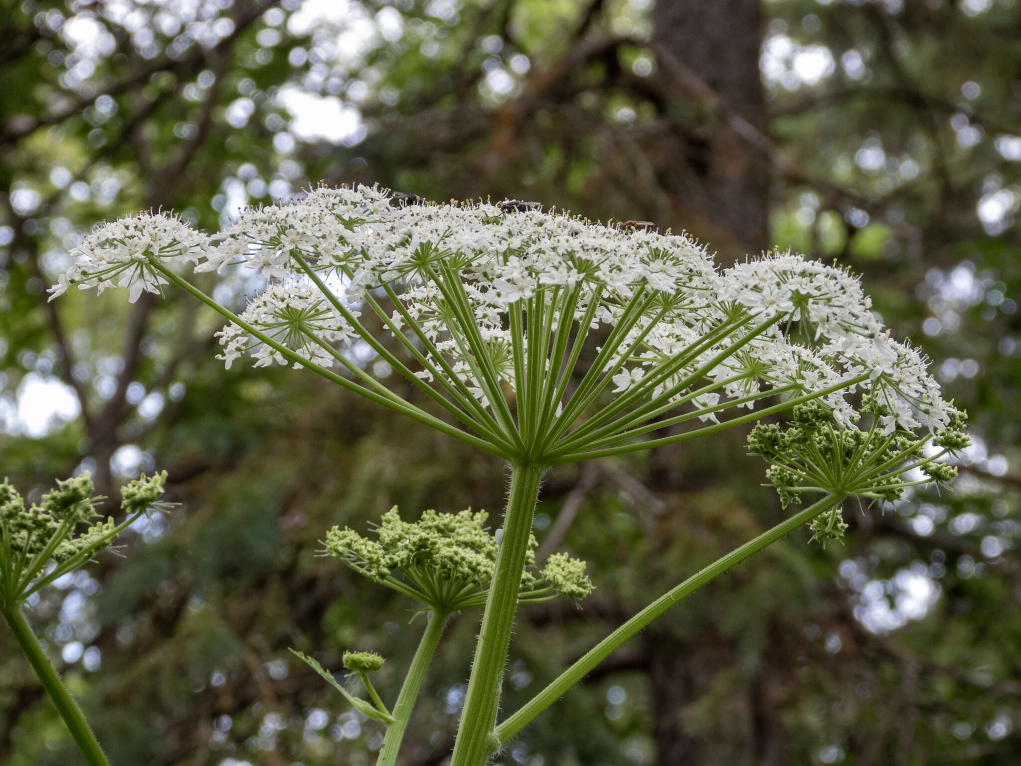 As we were approaching the parking lot at the Savage Centre by the Whitemud Ravine my teen suddenly said “That looks like a Giant Hogweed”. His words made me stop in in my tracks. The statement was remarkable in the first place? How would a run of the mill teen know of Giant Hogweed? Secondly, Giant Hogweed has not been found in Alberta (yet) and finding its here would be unprecedented and very bad news indeed. Giant Hogweed (Heracelum mantegazzianum) is native to Eurasia. It was introduced in North America as an ornamental plant and soon started to throughout the continent. As if that would not be bad enough, the really bad news is that it is that the weed is highly noxious as the sap causes severe burns, blistering and scarring and even blindness if it gets in the eyes. There is plenty of graphic images online of the horrific damage the plant causes to skin (Google it at your own risk). It is considered as one of Canada’s most dangerous plants and has, to date, been found in the Atlantic provinces, Quebec, Ontario and British Columbia. According to Alberta Agriculture and Forestry the plant has not been found in Alberta yet and all plants reported as possible Giant Hogweed in Alberta have turned out to be Cow Parsnip. The plants belong to the same family and look very similar. The Giant Hogweed is sometimes even referred to by the name Cow Parsnip. The key difference between the plants though is that Cow Parsnip is harmless. We learned a lot that afternoon as we carefully inspected and photographed the plant. I still don’t know, however, where my teen learned about the Giant Hogweed.