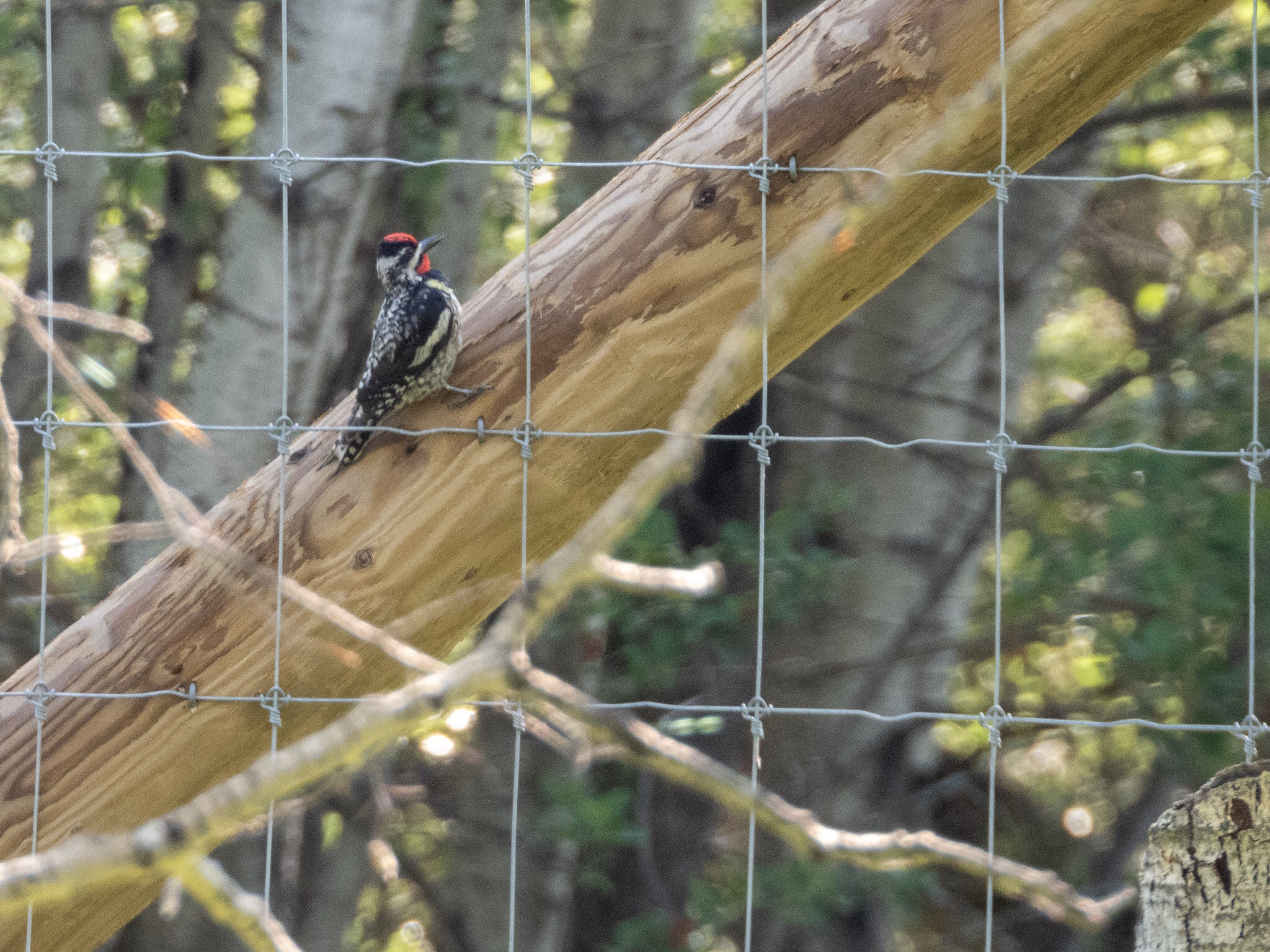 Right by the parking lot at the south side of Elk Island National Park there was an energetic Yellow-bellied Sapsucker hard at work trying to drill holes in the posts of a widening fence. Sapsuckers are known for creating symmetrical rows with large number of shallow holes on trees in order to harvest tree sap. I wonder if it was working on the wooden fence by mistake (which clearly will not have many sap) or if it was looking for insects (which the fence posts may have). Sapsuckers can make a large number of holes in a single tree and there are known instances where trees are girdled by overly enterprising sapsuckers. The Yellow-bellied Sapsuckers is our only woodpeckers that migrate south in the winter.