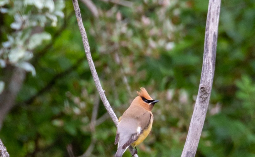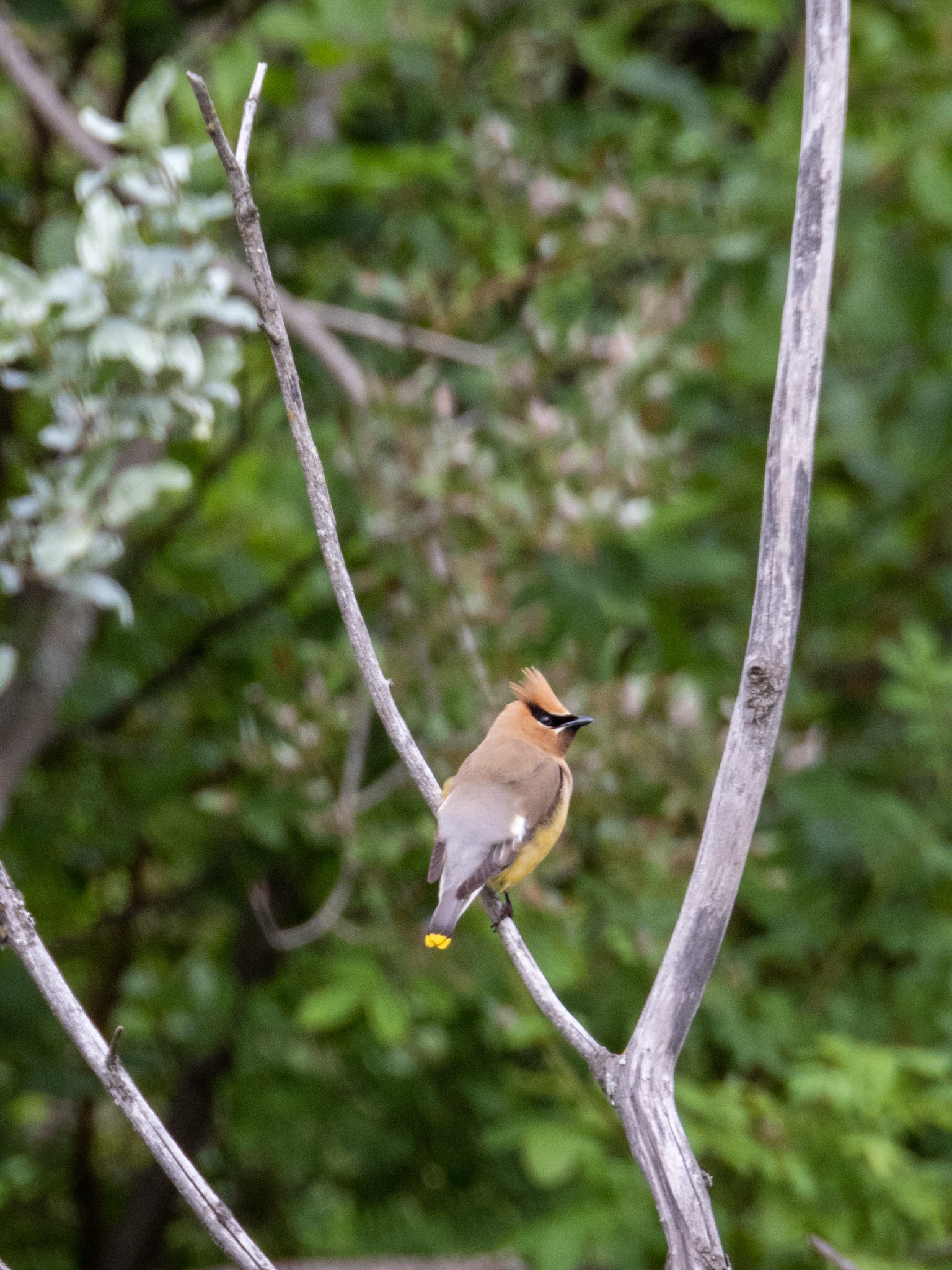Cedar Waxwing (Bombycilla cedrorum) at Whitemud Creek. July 28, 2019. Nikon P1000, 1109mm @ 35mm, 1/500s, f/5.6, ISO 400