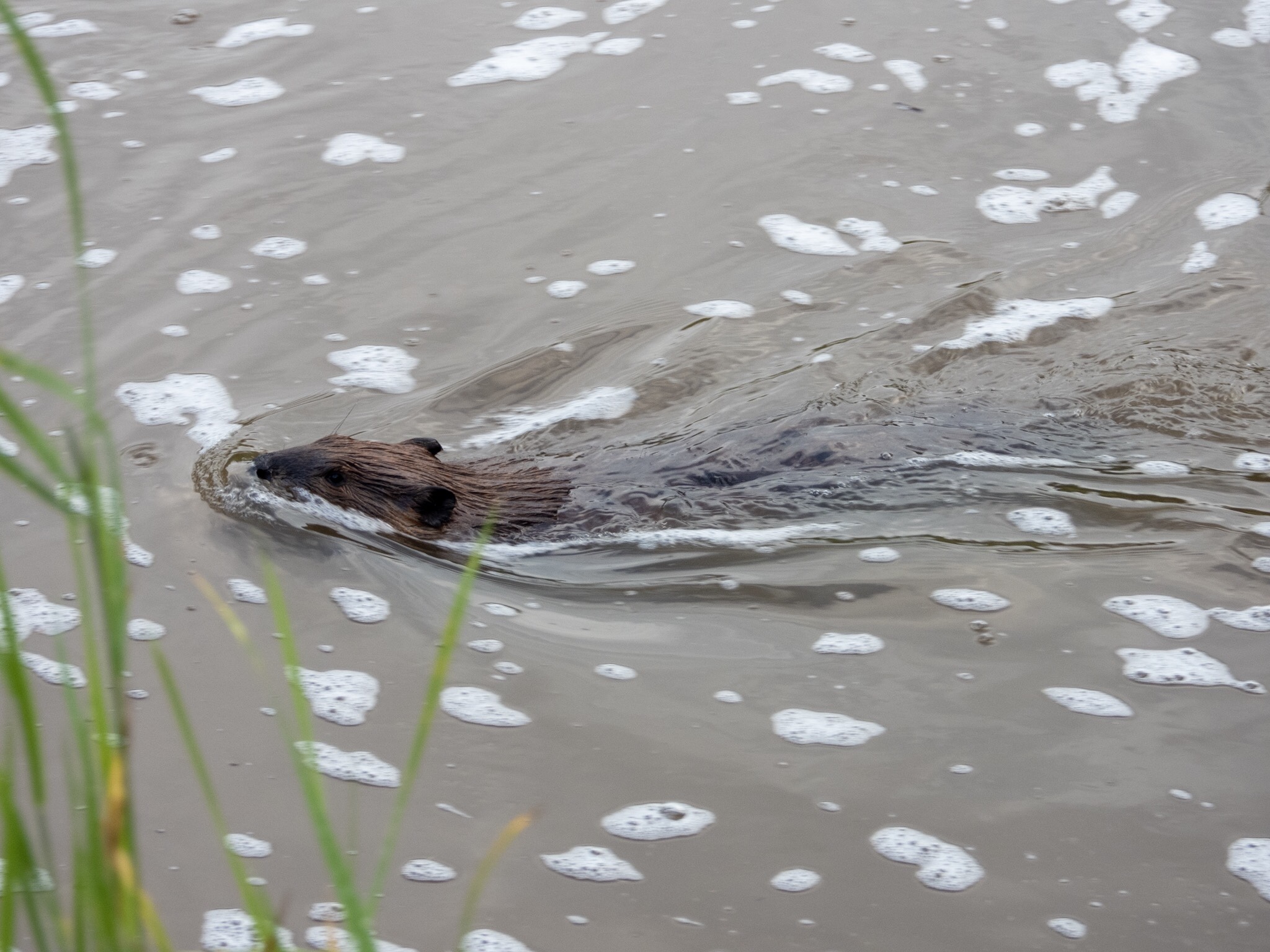 Well, I don’t actually know if the beavers are back…, I do know, however, that at least one beaver is back at the Whitemud Creek. The last time I encountered beavers at the creek was over three months ago back in mid-April (See Post No. 020). At that time there were beavers galore in the creek and then they just vanished. There is obviously much more to this story, but I’ll save that for a different day. What matters is that it appears that a beaver has somehow found its way back to the creek. A few days ago I caught a fleeting glimpse of one individual doing the rounds in the creek. I just barely managed to snap a picture of it. It is a good thing I did, otherwise I probably would have been second guessing myself, questioning myself if I really had seen what I thought I had seen or if my eye or brain were just playing tricks on me. I am intrigued about where this beaver came from. Did it swim in from the North Saskatchewan River or did it come down from an upstream location of the creek? My suspicion is that it came in from the North Saskatchewan River, but I have no idea how to prove that. I have to admit that while it was super exciting to spot a beaver at the creek again, it did not come entirely as a surprise. A few days earlier I saw the writing on the wall in the form of a freshly felled poplar bearing the unmistakable signs of a beavers handywork.