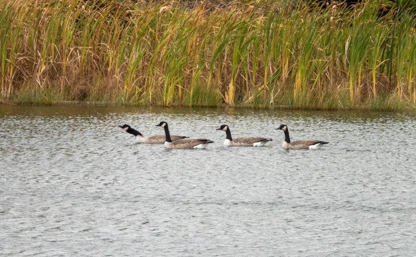 The plan was to head out to the Heritage Wetlands park in Sherwood Park but half way there I realized that I would have to change my plans. The wind was picking up and with rain showers rolling in I had to make a quick decision if I should just scrap the plan and turn around or come up with a Plan B. I went with Plan B. As I was already in Sherwood Park I decided to make a quick visit to Emerald Lake and then decide where to go from there. To call Emerald Lake a lake is an overstatement. It is more of a storm water pond squeezed in between big box stores, a high school and busy roadways. Despite its unglamorous location the bird life can be surprisingly rich here. The main benefit on a day like this is that one can park in the parking lot of one of the big box stores only meters away from the edge of the lake. The wind blew off my cap several times and the trees were swaying in the strong breeze. A half dozen Canada Geese were swimming against the wind but did not seem to make any headway. Other than the geese, a few Golden Eye and Mallards it pond was, perhaps not surprisingly, abandoned.