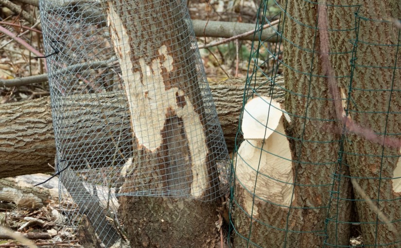 I assume it was bound to happen. Just like the Terminator said “I will be back”, so did the beavers. It appears that over the last month or so an army of beavers have invaded the Whitemud Creek. They have left their telltale signs all along the creek, with downed trees, chewed branches and debarked trunks. It is quite obvious that they mean business. Even trunks that have been covered in metal wire mesh – a way to deter beavers from damaging high valued trees – have not been spared. I am not entirely sure how they get to the trunk if there is a metal mesh in the way, but I guess if you are an uber-ambitious beaver you could either try to go under or over the mesh with a bit of acrobatic maneuvering…, or through the mesh if you are patient. Expect more beaver action picture over the next few days. I have not yet actually spotted a beaver, but I imagine that it only a matter of time.