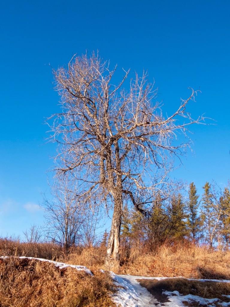 Today I managed to squeeze in two nature walks. A morning visit to Centennial Park in Sherwood Park. It was a blistering cold day with temperatures down to -20C, yet the winter hardy birds were out in full force. In the afternoon I visited The Whitemud Ravine. This time it was quiet and, other than Black-capped Chickadees, I spotted a fleeting glance of a Pileated Woodpecker. I heard the characteristic monkey laugh of it first and as I started scanning for it I saw a quick flash of it landing on the back of a dead old growth tree. By the time I made my way around the tree the Pileated Woodpecker was gone, but I did find a large cavity roughly where it had landed. I suspect that the woodpecker was likely in that cavity. This is the second potential nesting site of a Pileated Woodpecker I have found at the Whitemud Ravine. I am still lacking any useful photographs of Pileate Woodpeckers, so I will need to monitor these cavities more regularly. Around 3:30 in the afternoon the sun was getting low and by 4 pm it was dusk-like and too dark for photography. The early darkness is an unexpected challenge when it comes to birding during this time of the year. Winter solstice is still several weeks away so things are looking dark (pun intended) for the next little while.