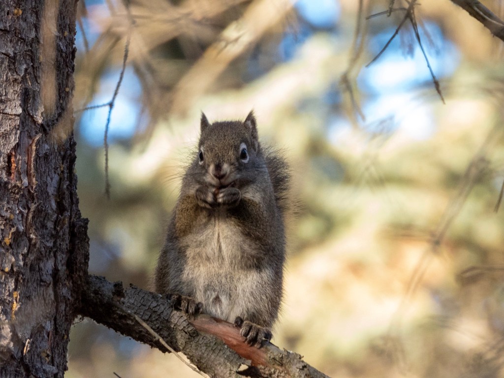 It never ceases to amaze me how hardy and resilient the animals in the forest are and how meek and helpless we humans are. Take this unassuming red squirrel as an example. I came across this little fella on a bitterly cold morning sitting in a tree munching on a snack seemingly not being bothered by the cold at all. I on the other hand, I was bundled up in more layers that I care to count, little hotties in boots and, toque and gloves…, yet, I had to keep moving to stay warm. It is remarkable that an animal so vulnerable and helpless to the elements has managed to become the globally dominant organism. The reason for the “success” of humans is obviously the brain. What we lack for in hardiness, teeth, claws and physical prowess we make up for with our brain. Nevertheless, this humble squirrel (and others like it) deserve our respect and admiration.