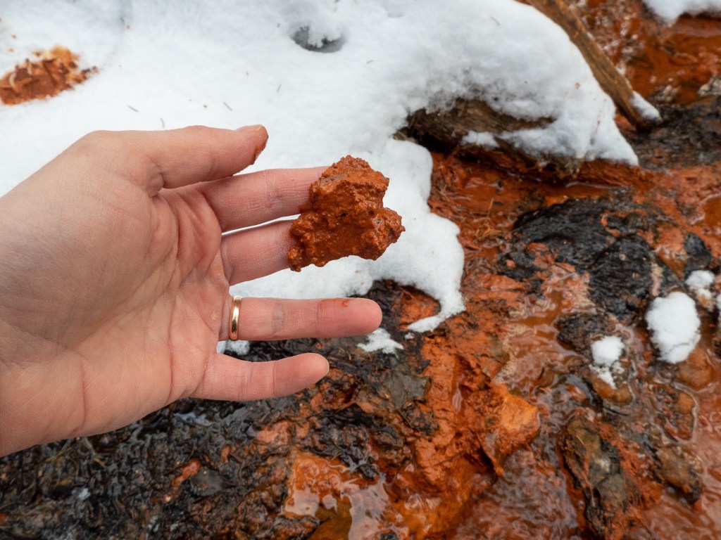 I could not resist digging up some of the sediment with my fingers. The substrate was creamy and slippery with the color staining my fingers.