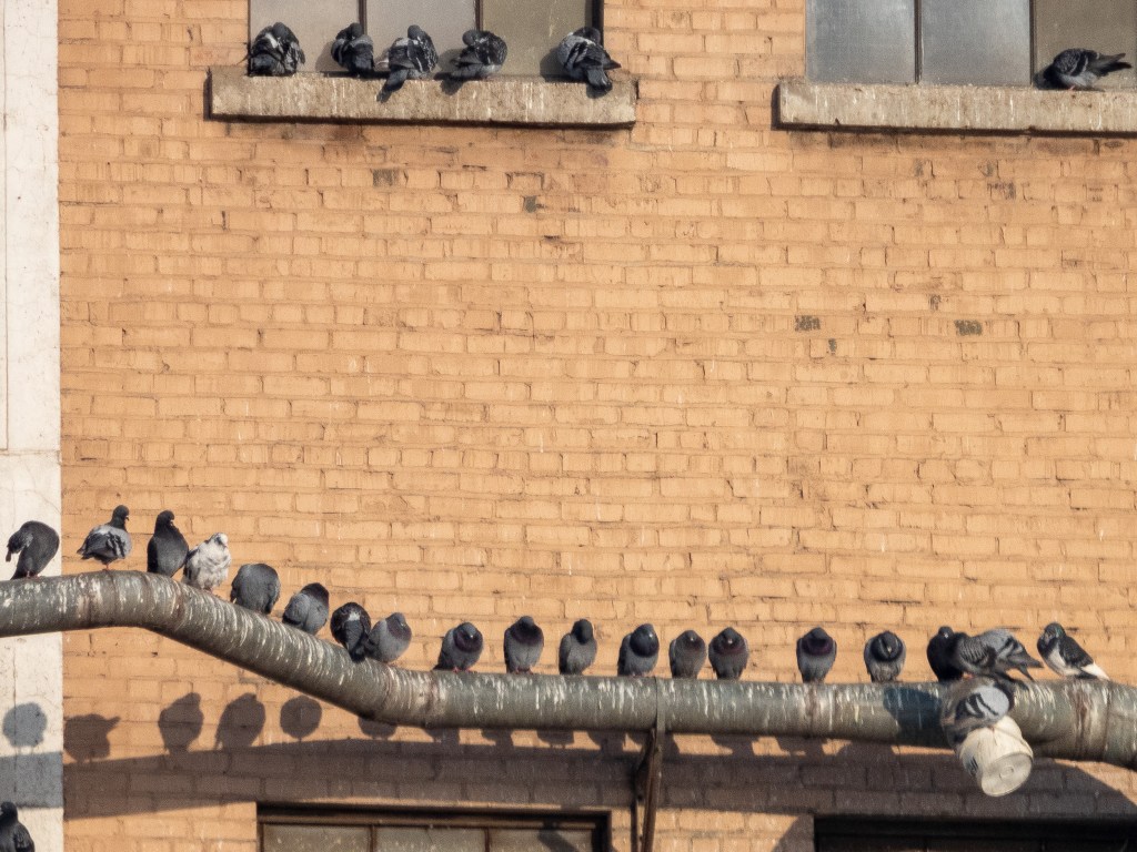 Like silent feathery gargoyles the pigeons were snoozing on the duct work of the grain terminal. As I was scanning the thousands of pigeons covering the facade of the hundred year old brick building I was thinking to myself “why are there so many ducts?”. Is it ventilation or heating? Who knows what it takes to store and transport gain. The pigeons did not seem to ponder such trivial and technical details. The merely seemed to enjoy the duct work as a place of resting and pooping.