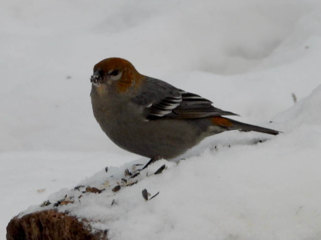 The usual suspects greeted me along the trail – Black-capped Chickadees, Nuthatches, Magpies and Red Squirrels. But as luck would have it there was something else in store on this day. Further along the trail, high up in a tree, I was able to discern three plump shadow hoping around on the bare branches. With the bright sky as backdrop it was tricky to make out any identifying characteristics, but it was soon evident that this was a new one. While I was ogling the suspects two other birders arrived. They too were stumped by the unidentified flying objects. I always though it would take more than a wee bit of courage for birders to admit to each other that they have no clue what bird they are looking at. But here we were, the three of us staring at these three plump silhouettes and all we were able to agree on was what it could not be. To small for waxwings or robins, too large and plump to be red polls or any other common finch. After going back and forth one of us managed to find a possible match using Merlin…, Pine Grosbeaks. It immediately dawn on me – here I am birding for the first time in seven months and I spot a lifer. More specifically #167. Later on as I was looking at my stats in eBird I realized that the previous lifer was on December 15 (one year and one day ago) at the same spot, along Whitemud Creek (a Black-backed Woodpecker).