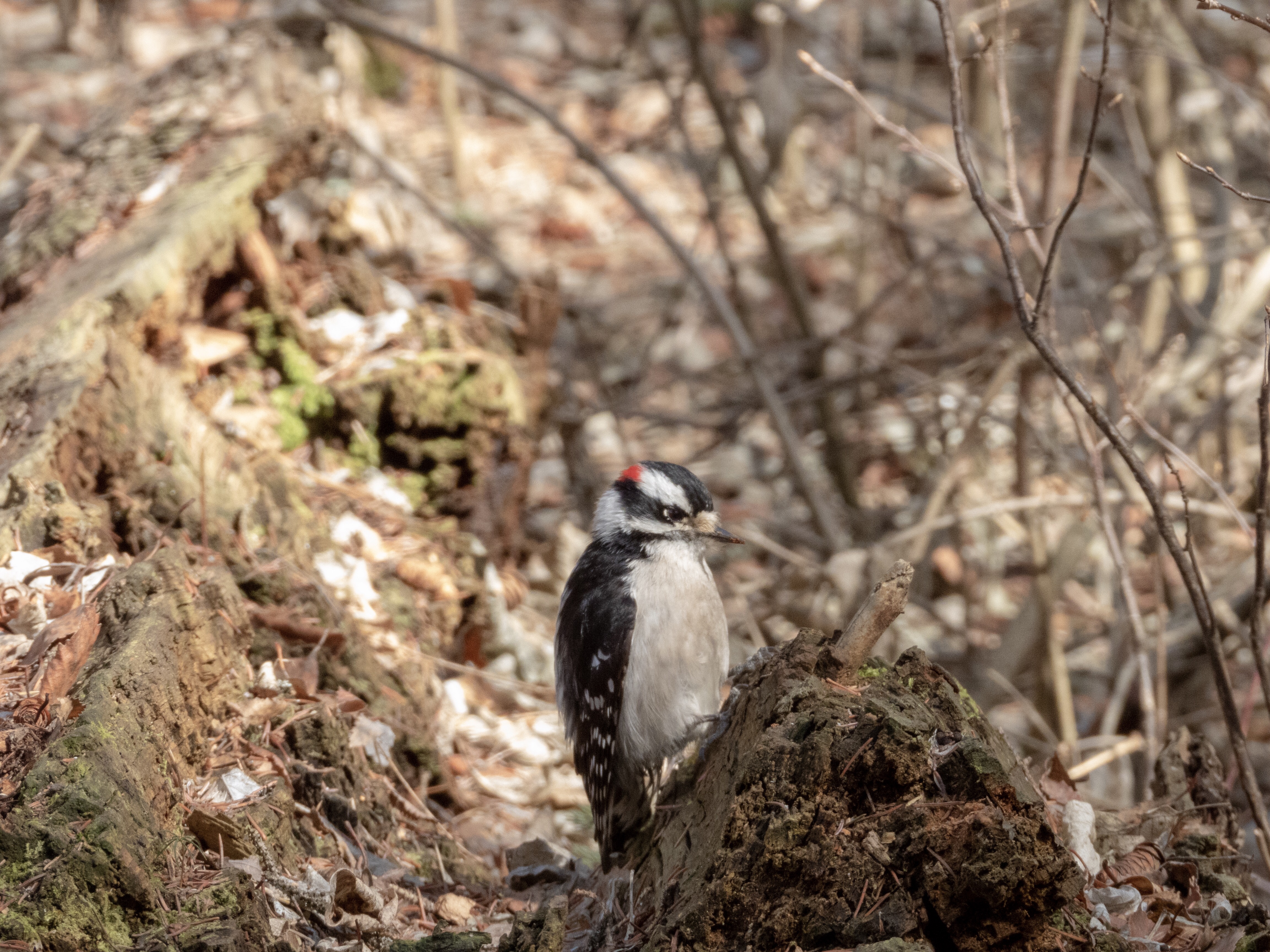 The Downy Woodpecker is the smallest North American Woodpecker and quite likely also the cutest. The Downy Woodpecker holds a special significance to me as it is the first species that I identified for my 2019 Alberta Big Year. Today I found this little guy (the red patch indicates it is a male) down on the forest floor spending a long time going through all the nooks and crannies of an old log looking for anything to eat. Downy Woodpeckers are not shy and often come to suets in the winter. Today I realized, however, that they are tricky to photograph as they tend to be quite energetic and move around a lot. One of the first identification challenges I encountered when In started birding was to tell downies apart from their larger lookalike, the Hairy Woodpecker. Other that a slight size difference, with the Hairy being a tad larger, all other distinguishing characters are very subtle. The breakthrough for me came when I visited Beaverhill Bird Observatory in December and encountered both species at the bird feeder at the same time. Ever since that day I have had no troubles distinguishing between the two. The next few bird species that I would benefit from having next to each other to get that light bulb moment would be a Canadas Goose vs. a Cackling Goose and a Bohemian Waxwing vs. a Cedar Waxwing.