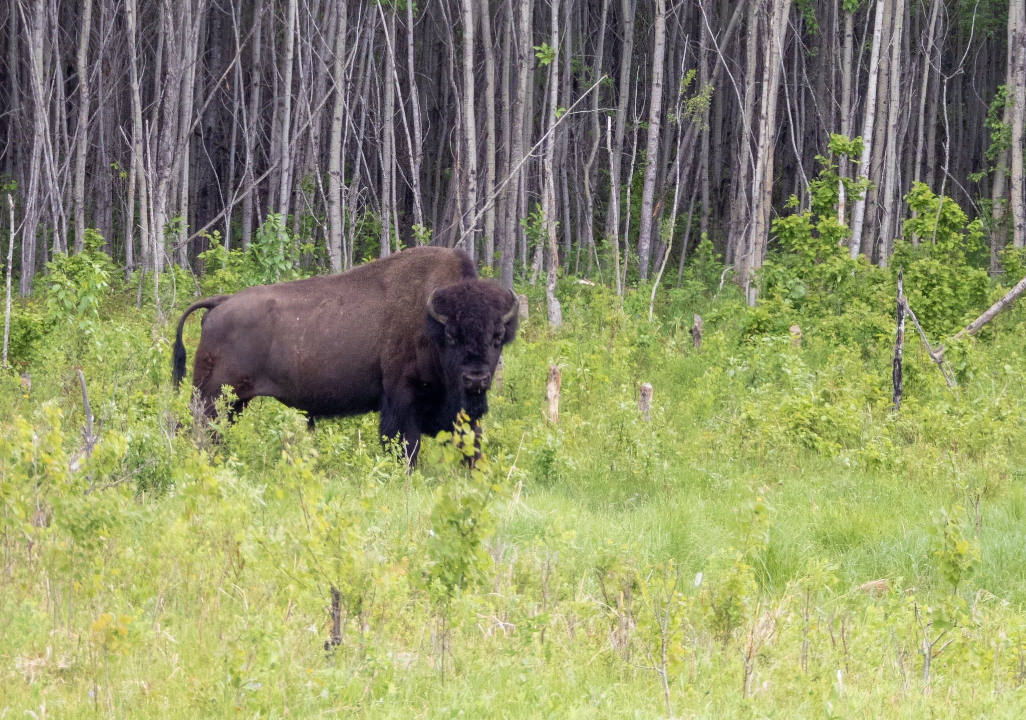 Bison traffic jam at the Bison Loop at Elk Island National Park. June 30, 2019. Nikon P1000, 157mm @ 35mm, 1/100s, f/4, ISO 100