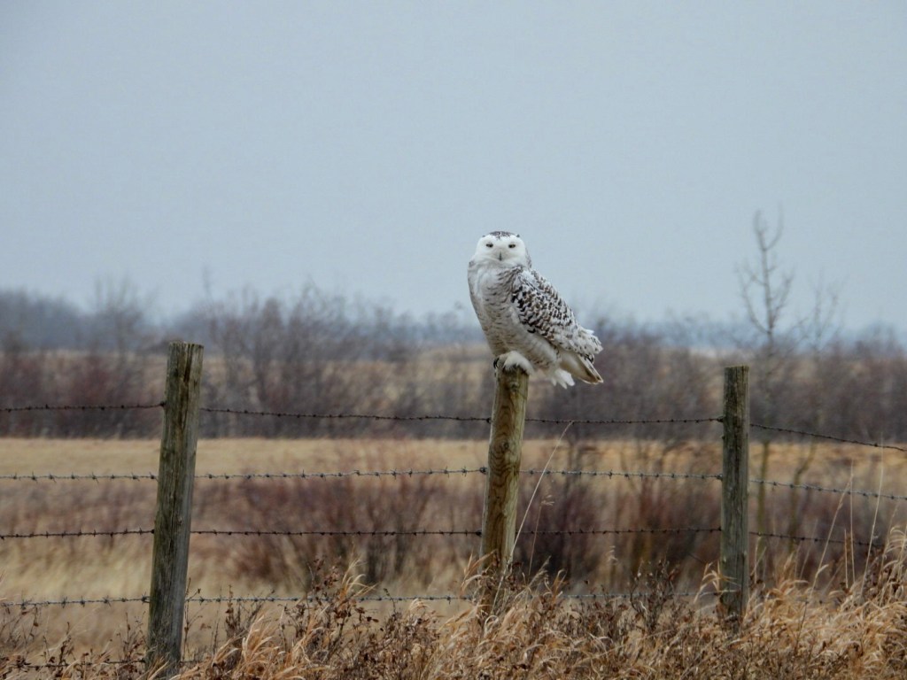 Snowy Owls spend the winters in Alberta only to return to the arctic in March and April. Last weekend (April 6) we were out by Beaverhills Lake Natural Area, crisscrossing the country roads looking for returning migrants. We were hoping for a diverse assortment of water fowl and crossing our fingers for the ephemeral Snow Goose. We had just checked out a waterlogged field where a large group of Snow Geese had been seen the previous day. Alas, they had moved on by the time we made it there. A bit bummed we rumbled on along the dusty gravel roads when, all of a sudden, in the distance I noticed a large “poofy” mass on top of a fence post along the road. Although I am an owl noob, I have seen enough owls this winter that I know to scan for “large poofy masses”. I though to myself, “that looks like an owl”, never actually seriously thinking it would be an owl. As we approached, I could not help myself from slowing down, just in case. Well, would you believe it. It was a lonesome and gorgeous Snowy Owl. The car came to a screeching halt. I yelled to my companions in the back seat: “OWL UP AHEAD”. Everyone dropped what they were doing. I have never seen a pair of teens becoming unglued from their cell phones so fast. We had barely come to a stop, the windows were already down, binoculars up and I threw myself out of the car with the camera ready to shoot. The owl could not care less. It sat there looking at us indifferently and eerily cool. This was an unexpected treat. While we did see a Snowy Owl a few months ago I had simply assumed that they had all left for their arctic summer. Checking eBird later that day, revealed that, indeed the only Snowy Owl sightings for the month of April in Alberta were right in the area were we were. As a matter of fact, the same day another reporting of a Snowy Owl was recorded just a few km away along the same range road. Could it be the same owl? It’s possible, or maybe there are more holding on to our Alberta spring. I assume this will be the last Snowy Owl for this winter. So long Snowy Owls. Bon voyage and see you next winter.